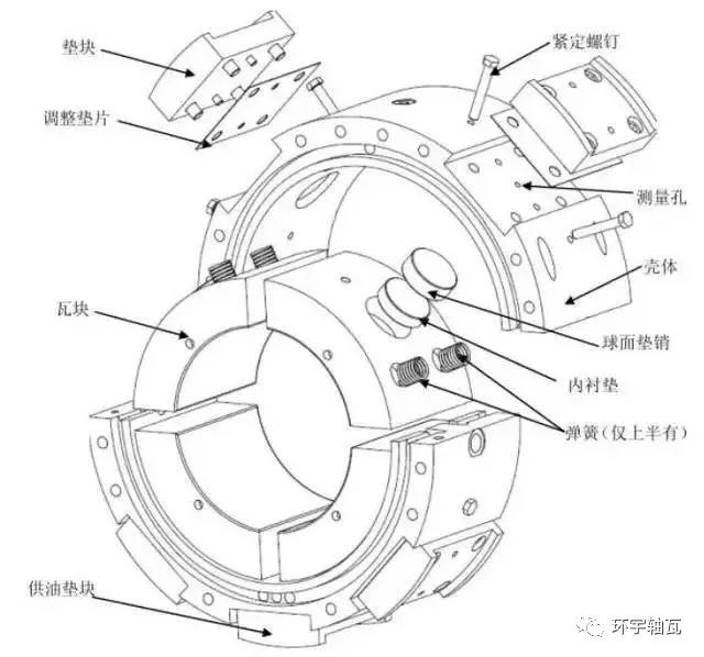 上半為圓瓦,下半由二塊可傾瓦組成的可傾瓦軸承,這種結(jié)構(gòu)的軸承的穩(wěn)定性比圓柱軸承強(qiáng),承載力比一般可傾瓦軸承大,具有可傾瓦軸承對(duì)偏載和不對(duì)中敏感性較小的優(yōu)點(diǎn)。