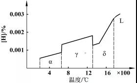 氫在鋼中的分布以芯部最多,邊緣最少,呈蘑菇狀分布。氫在純鐵中的溶解度和在液態(tài)鐵中的溶解度雖各有不同,但總的趨勢是隨著溫度的上升而溶解度增大。國內外專家研究結果在基本概念上的結論是一致的,可把氫在鐵中的溶解度和自擴散系數概括為如圖1(a)、(b)所示。