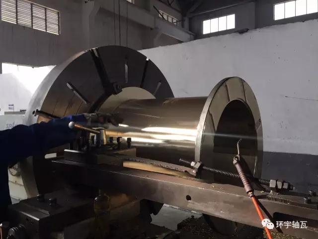 如果窯中心線與某一擋托輪存在偏差,出現(xiàn)正“八”字或倒“八”字時,回轉(zhuǎn)窯筒體在上行或下行時,輪帶對存在偏差的托輪,便產(chǎn)生了較大的軸向力,它會使托輪軸相對于瓦產(chǎn)生軸向位移,使軸的運動出現(xiàn)了徑向旋轉(zhuǎn)和軸向移動,破環(huán)了軸瓦原來的接觸面,從而引起托輪軸瓦的表面發(fā)熱并產(chǎn)生拉絲。