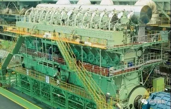 目前全世界范圍內(nèi)生產(chǎn)設計巨型船用柴油機的企業(yè)主要有瓦錫蘭、蘇爾壽、MAN,其中瓦錫蘭的產(chǎn)品知名度稍高一些,他們生產(chǎn)的14缸RT-flex96C柴油機轉(zhuǎn)速102轉(zhuǎn)/分。長27.3米,高13.5米,整機重2300噸,排量25480升,功率高達108,920馬力,是目前世界上最大的柴油機。