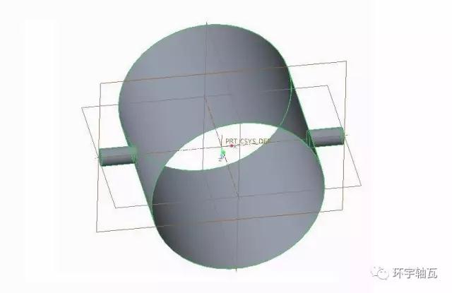 據(jù)上相關(guān)尺寸參數(shù),軸承采用兩端進油,忽略相關(guān)油槽及孔,于Proe中繪制滑動軸承油膜計算模型,如圖1所示。