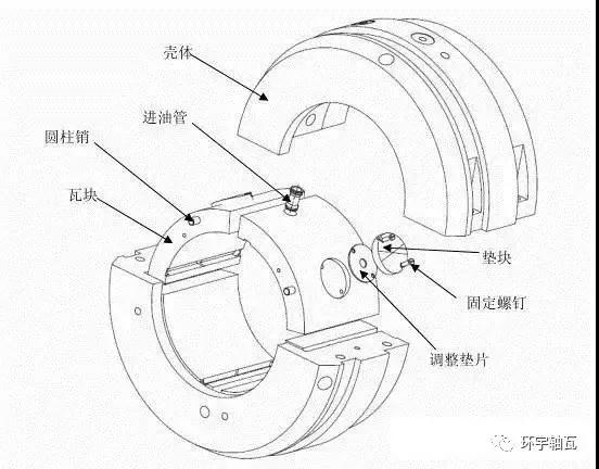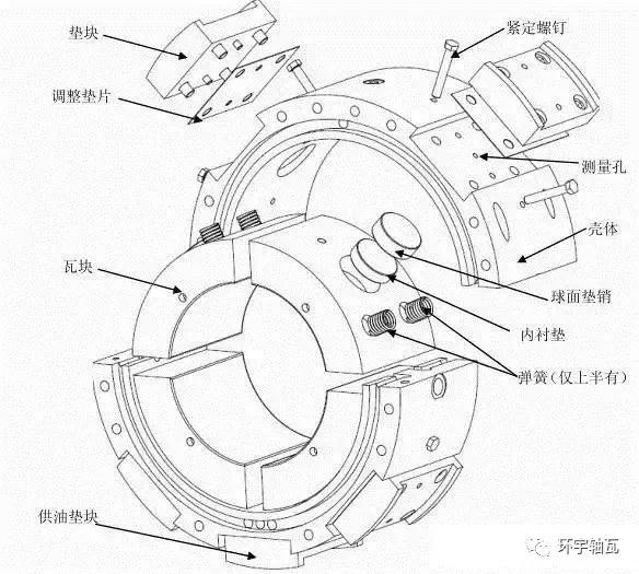 橢圓瓦軸承系自位式軸承,具有結(jié)構(gòu)上層次少的優(yōu)點(diǎn),在軸承體內(nèi)表面直接澆注巴氏合金,將軸承內(nèi)瓦面加工成橢圓的形式。