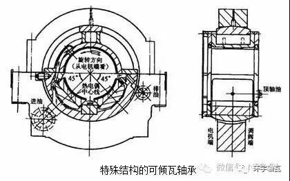 4.可傾瓦軸承:2、4、5、6瓦塊軸承,穩(wěn)定性好,承載范圍大,耗油量較大。