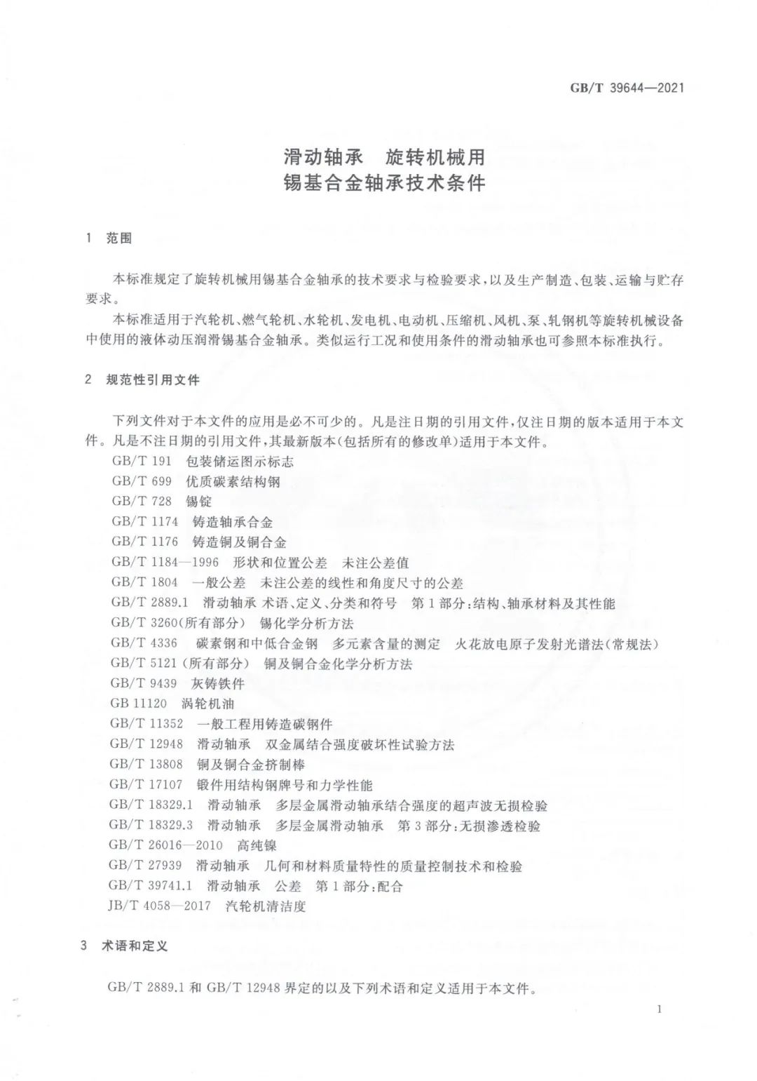 GBT 39644-2021_滑動(dòng)軸承 旋轉(zhuǎn)機(jī)械用錫基合金軸承技術(shù)條件