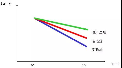 圖1 三種潤滑油的粘度指數(shù)曲線的比較