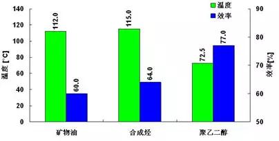 由圖1和2可知,聚乙二醇醚類的潤滑油有更好的粘度指數(shù)、更高的傳動效率和低的溫升,因此采用聚乙二醇醚類的潤滑油能夠更好的抑制托輪軸瓦的發(fā)熱現(xiàn)象。