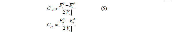 +△Vx擾動得Fx5、Fy5;-△Vx擾動得Fx6、Fy6;+△Vy擾動得Fx7、Fy7;-△Vy擾動得Fx8、Fy8。